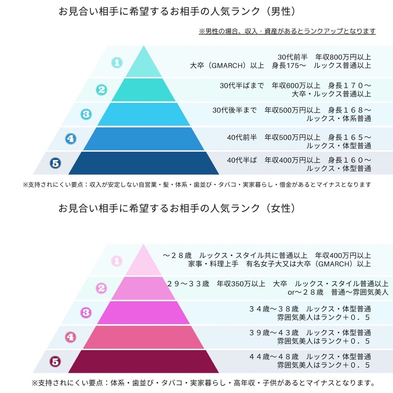 男女ともに婚活ランクが存在します