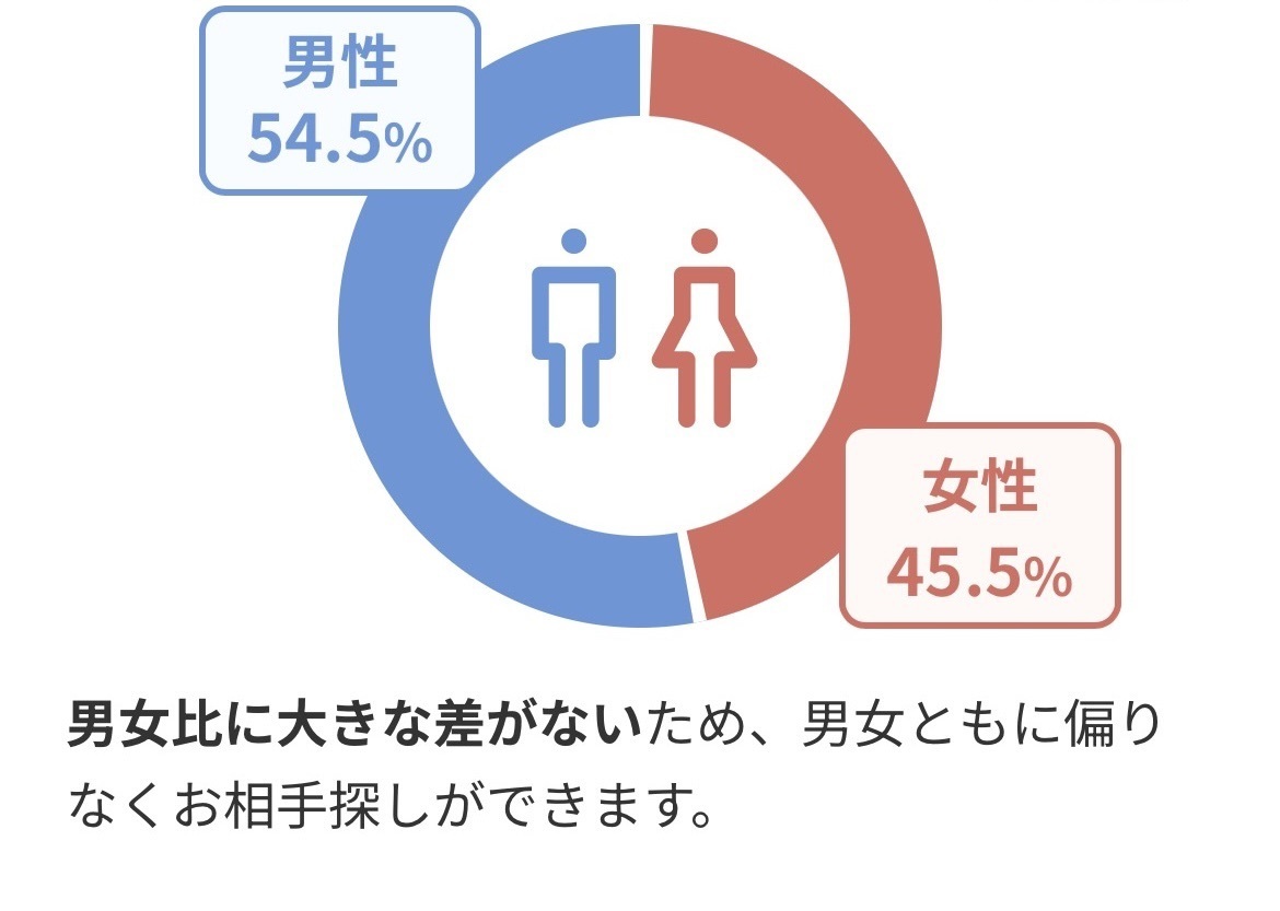 男女ともにフェアな環境でお相手探しができるのが大きな特徴です。